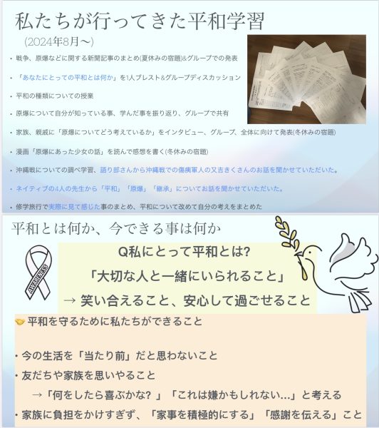 スピーチに耳に傾けた和洋生全員が、「平和」について思いを馳せる時間になりました。